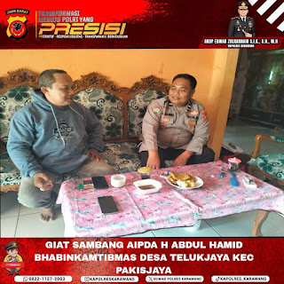 Kegiatan sambang dan silaturahmi tersebut, seperti yang dilakukan oleh Bhabinkamtibmas Desa Telukjaya Polsek Pakisjaya Polres Karawang Aipda H Abdul Hamid yang pada pagi ini (10/24) melaksanakan sambang Desa binaan dan berdialogis dengan para perangkat desa binaan