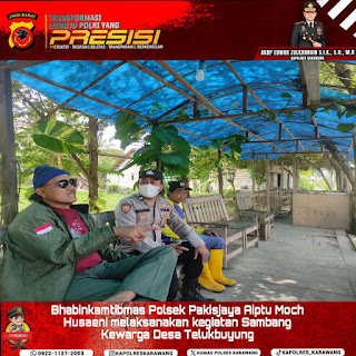 Kegiatan sambang dan silaturahmi tersebut, seperti yang dilakukan oleh Bhabinkamtibmas Desa Telukjaya Polsek Pakisjaya Polres Karawang Aiptu Mochamad Husaini yang pada pagi ini (17/03/2025) melaksanakan sambang Desa binaan dan berdialogis dengan para perangkat desa binaan